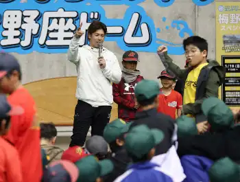 阪神 梅野が沖縄で自主トレ公開 午後から開催したトークショーに約150人「力をもらった」