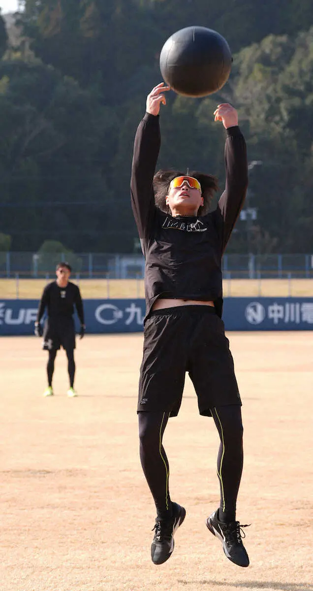 「揚げ物、油物は食べずに我慢。炭酸飲料は炭酸水にしています」と柳田の助言のもと食事制限ルールを守っている。「やれば化け物になれるぞ」と師匠からハッパを受けて早朝からウエートトレを継続中。「一番は体を鍛えること。ホームランバッターになりたいのでバンバンさらなるパワーアップ中です」と腕の力こぶを見せつけた。