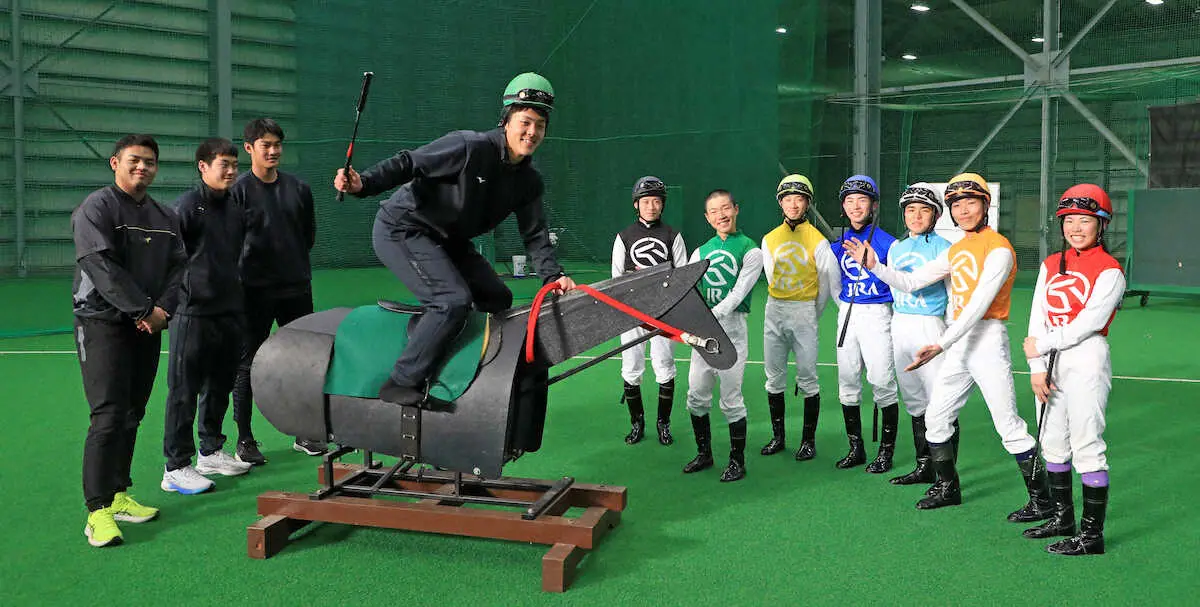 日本ハムのドラフト1位・柴田獅子投手(18=福岡大大濠)が23日、千葉・鎌ケ谷で行われた高卒入団選手とJRA競馬学校騎手課程41期生との交流会に参加した。最速149キロで高校通算19本塁打の“馬力”を誇るルーキーは訓練用木馬の試乗に挑戦。他の新人選手の姿を見てコツを学び、初体験とは思えない騎乗姿を披露した。