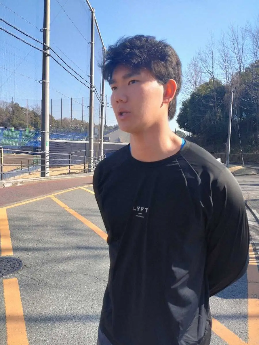 「とりあえずケガなく、少しずつステップアップできるようにしたい」。最速154キロの右腕は、快眠第一でキャンプに臨む。(秋村 誠人)