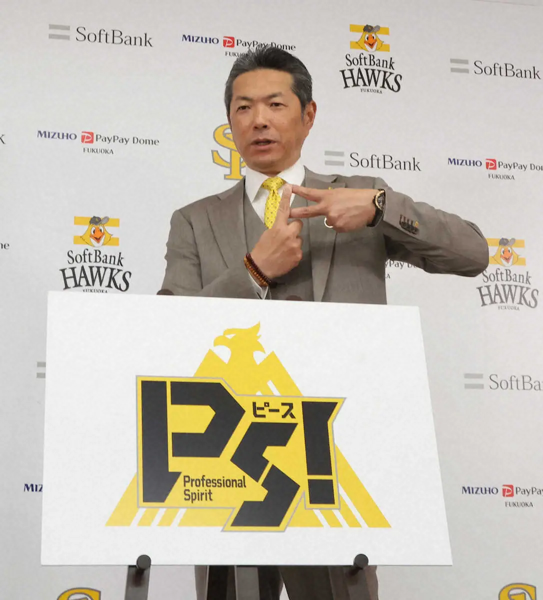 ソフトバンクが29日、福岡市内のみずほペイペイドームで25年シーズンのスローガンを発表。「PS!(ピース)」に、決まった。