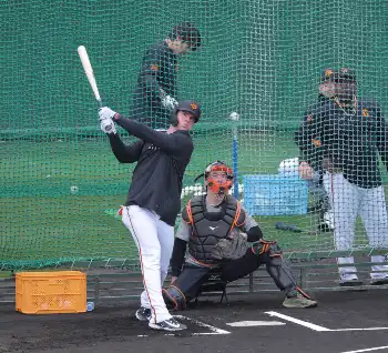 巨人期待のルーキー・荒巻&石塚 それぞれ柵越え3本!打撃練習で鋭いスイング