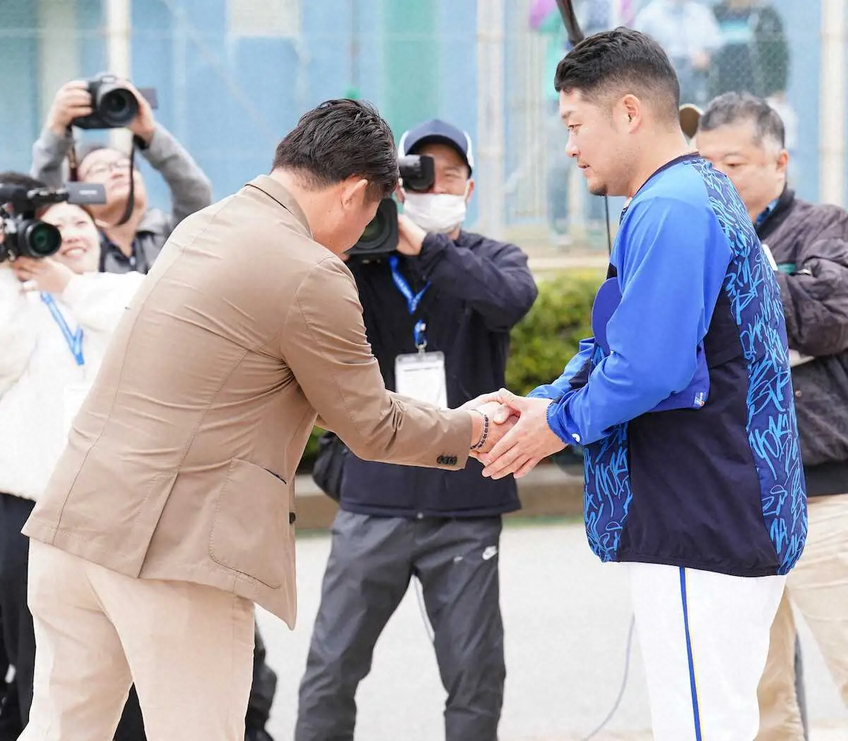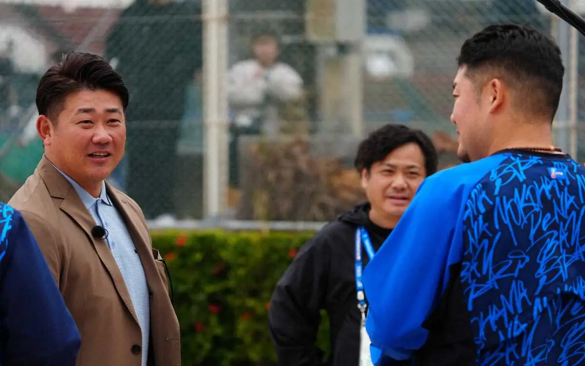 <DeNAキャンプ>度会(左)と握手する松坂大輔氏(撮影・島崎忠彦) Photo by スポニチ 松坂大輔氏がDeNAキャンプ訪問 横浜高の後輩・筒香、度会とガッチリ握手… ギャラリーで見る この記事のフォト 2025年02月06日の画像一覧 もっと見る 2025年02月06日の画像をもっと見る