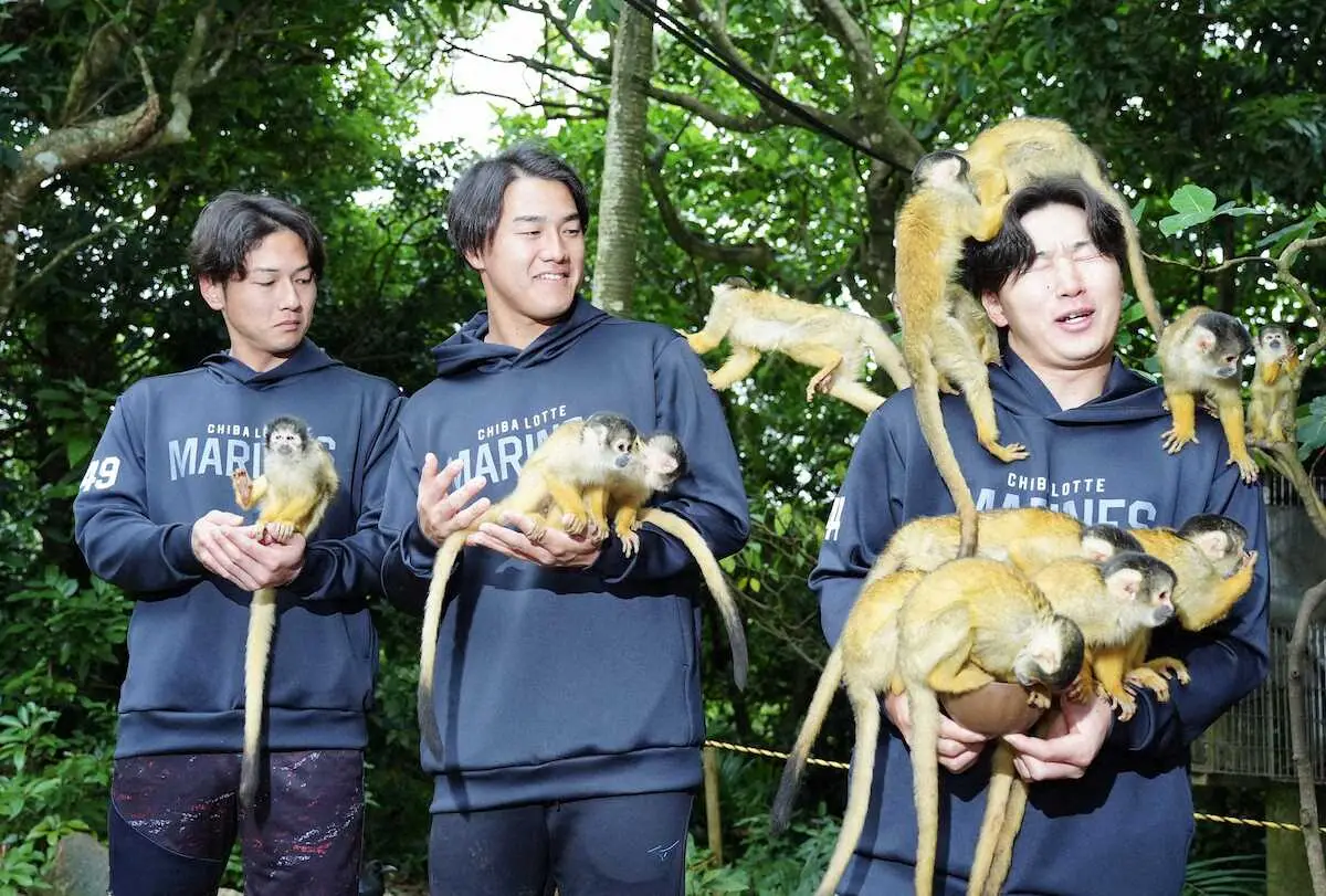 ロッテ新人3選手が「石垣やいま村」訪問 西川はリスザルと触れ合い「かわいかった」