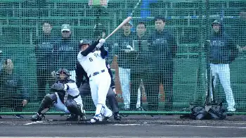 <ロッテ石垣島キャンプ>吉井監督(右)がら見つめる中、ライブBPの打席に入った西川(撮影・長久保 豊) Photo by スポニチ ロッテ・ドラ1西川 ライブBPで2安打 ギャラリーで見る この記事のフォト 2025年02月07日の画像一覧 もっと見る 2025年02月07日の画像をもっと見る