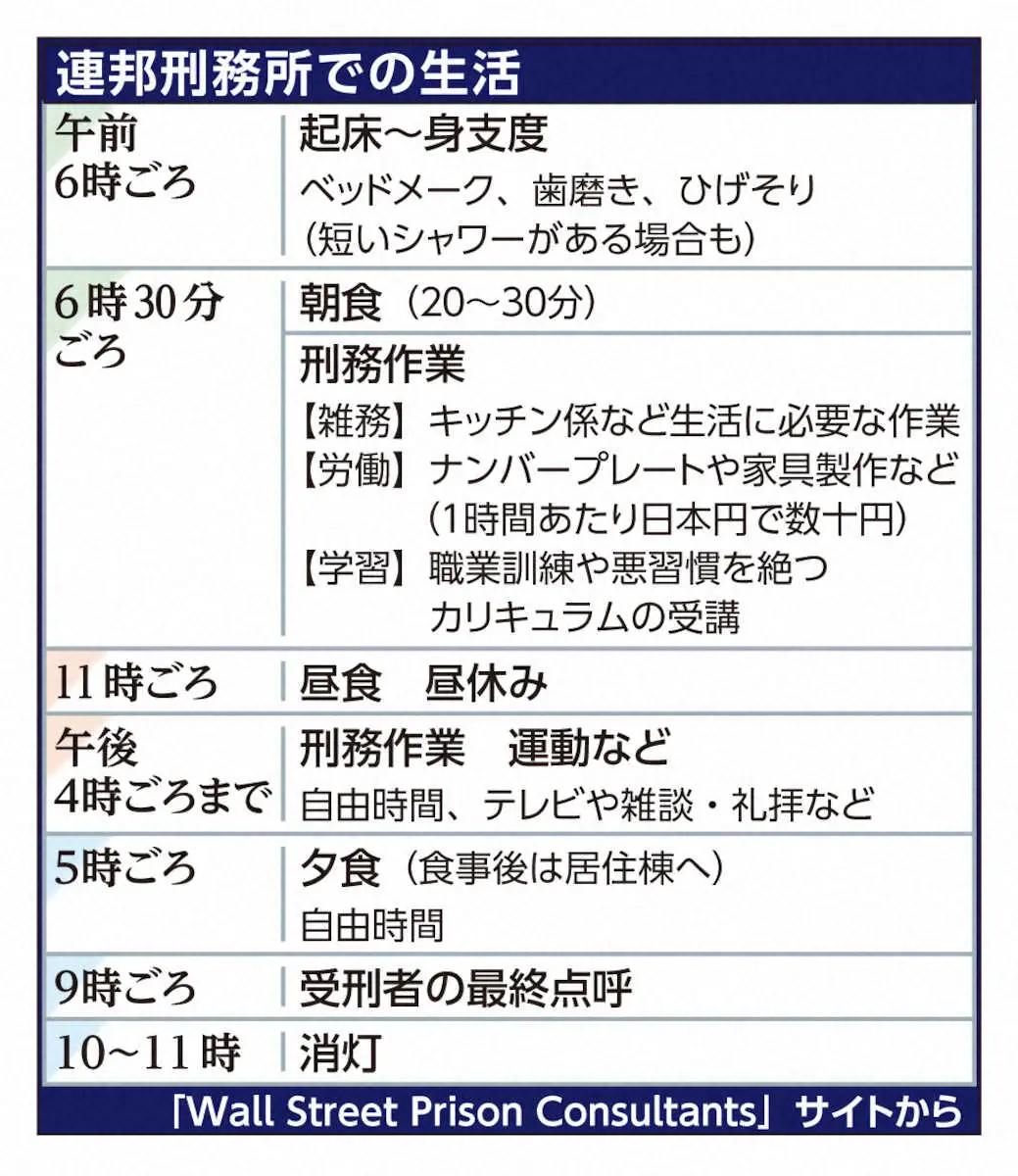 また、米国には連邦政府が運営する連邦刑務所と州立刑務所がある。連邦刑務所は州の刑務所と比べ、条件の良い施設が多く、高い水準の服役生活ができる。