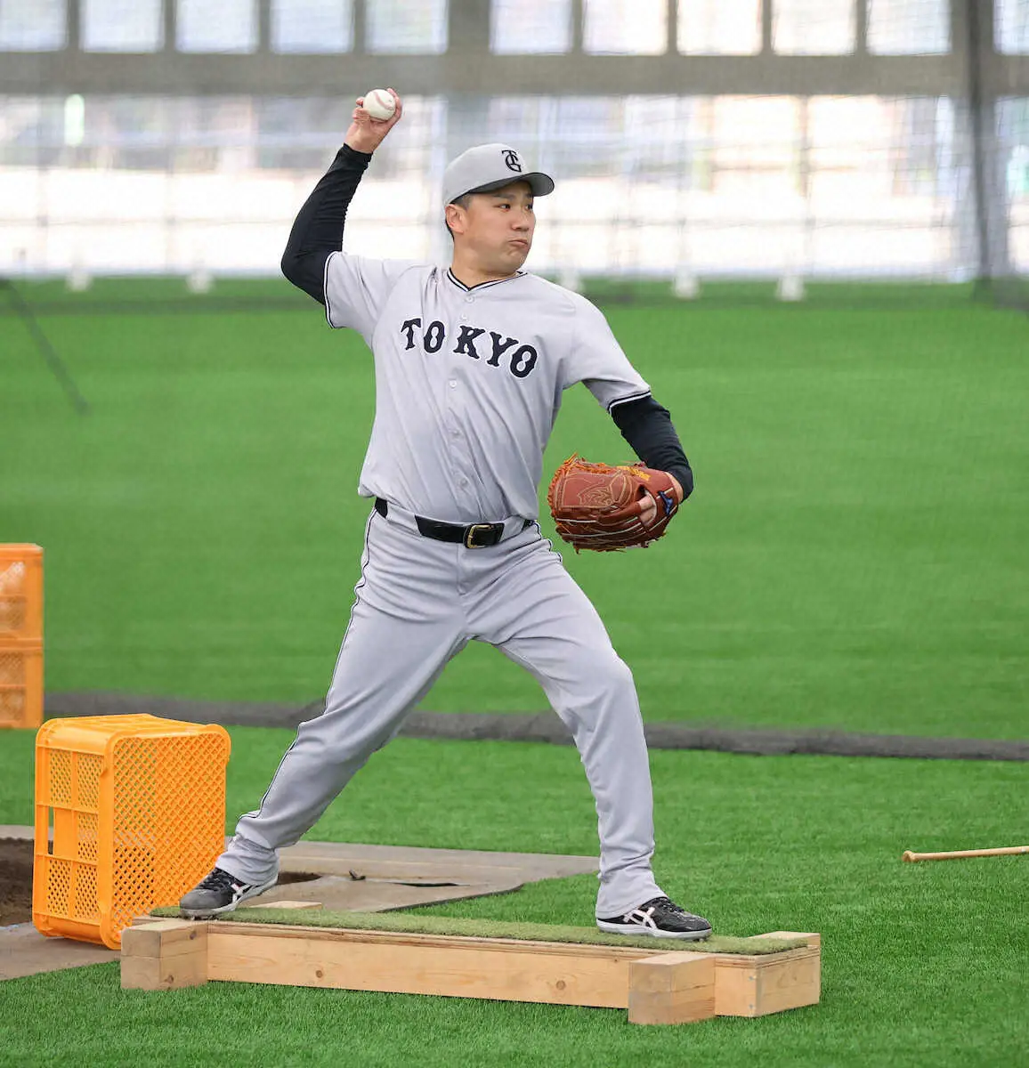 田中将はこの日も久保巡回投手コーチとフォーム改造に取り組み、平均台のような細長い台の上からのネットスローも実施。「狭いところで(体を)縦に使えないと落ちてしまう」と説明した。
