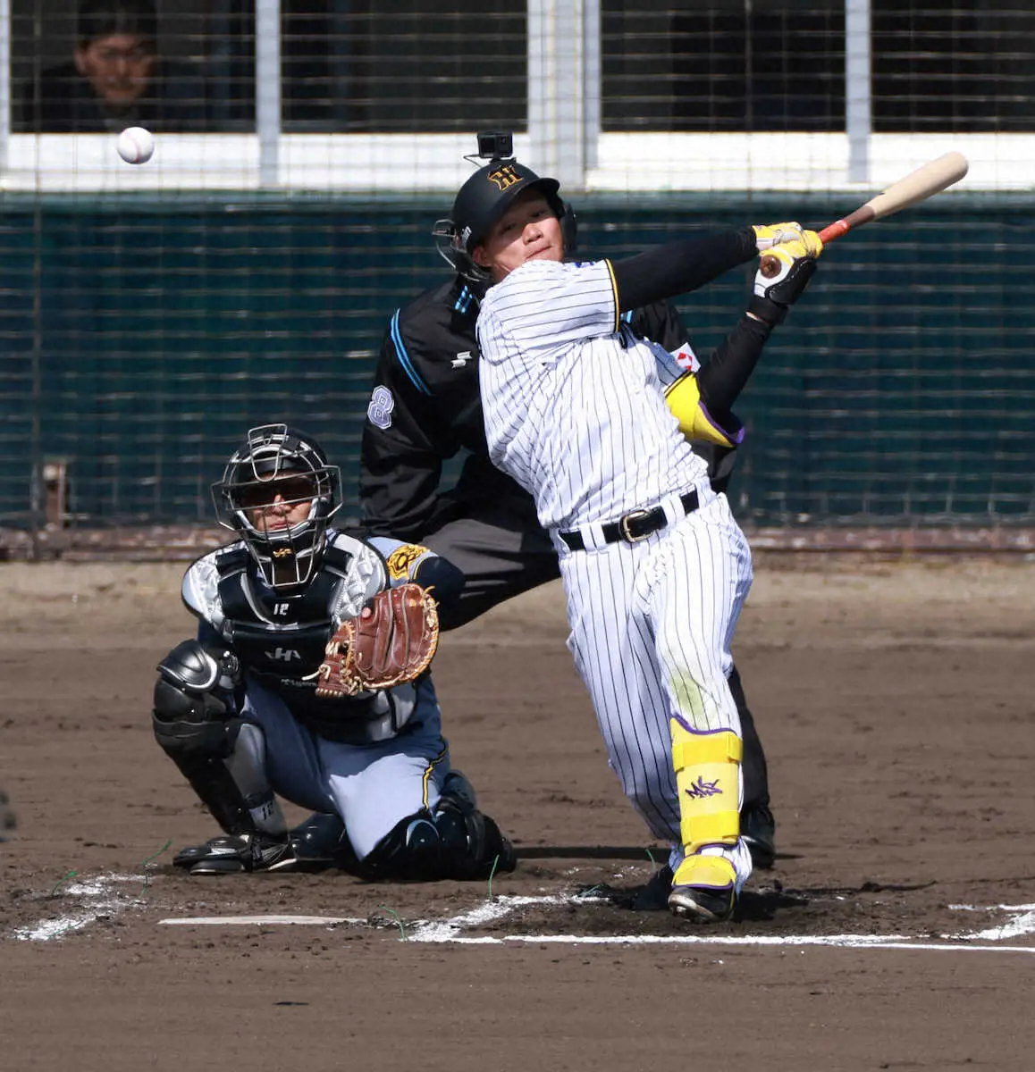 5球目の142キロ直球をバットを折られながらも、振り切って中前に運んだ。佐藤輝、森下、大山の並びで組んだ新クリーンアップの可能性を広げる一打だった。