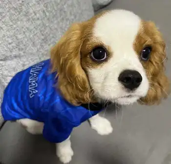 【うちのデコピン】西武・長谷川 得意の上目遣いにメロメロ