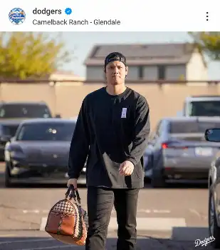 大谷翔平 キャンプイン前日に球団が出勤姿を今季初公開 手にしていたグラブ型のバッグが衝撃の値段