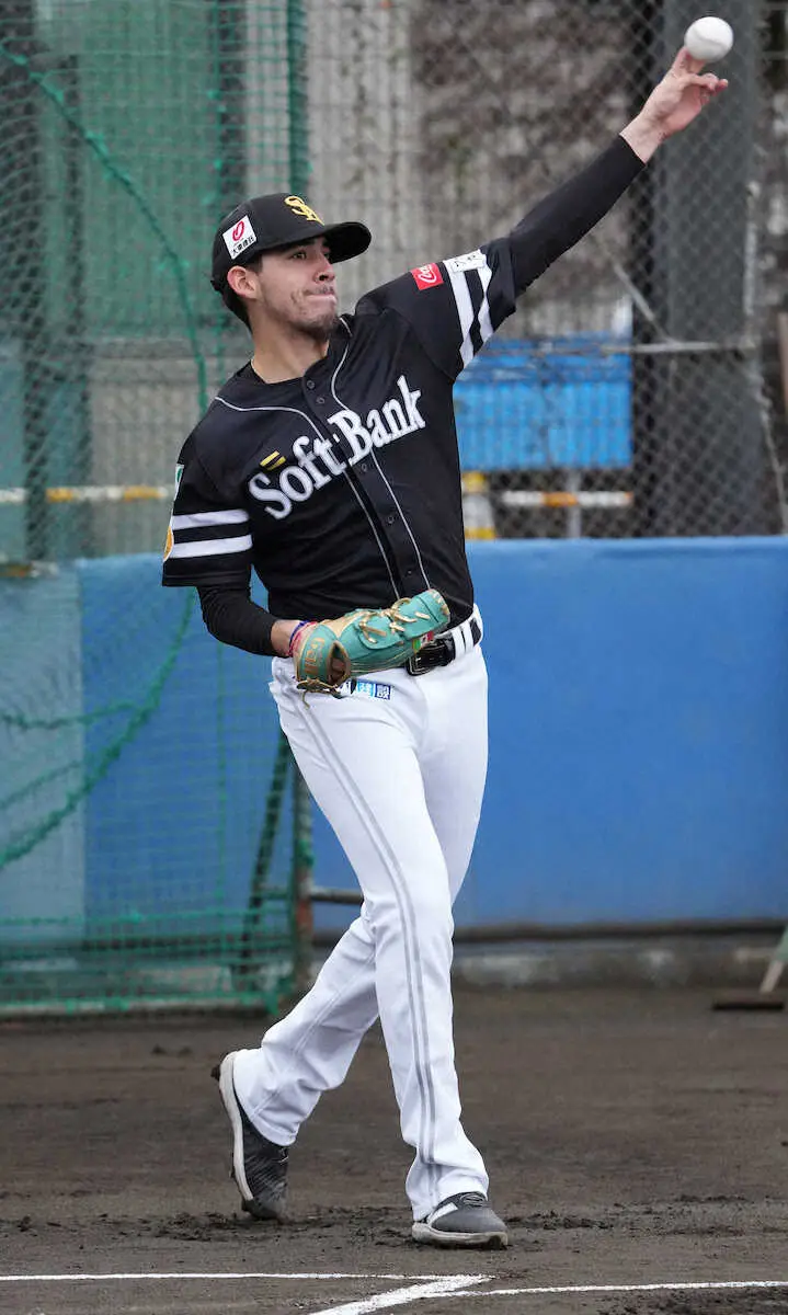 キャッチボールするソフトバンクのアルメンタ(撮影・岡田 丈靖)