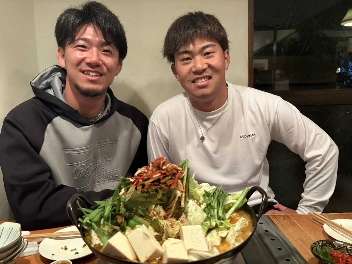 阪神・伊藤将&桐敷が訪れた知る人ぞ知る名店 沖縄では珍しい「もつ鍋」店で舌鼓