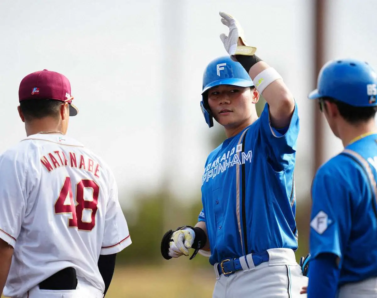 初回に中前打を放つと、7回1死満塁では右前適時打も放った。これで紅白戦も含めて3試合で8打数6安打4打点、打率・750だ。4回には4番・野村、5番・万波の「KJMトリオ」の3連打で2得点。