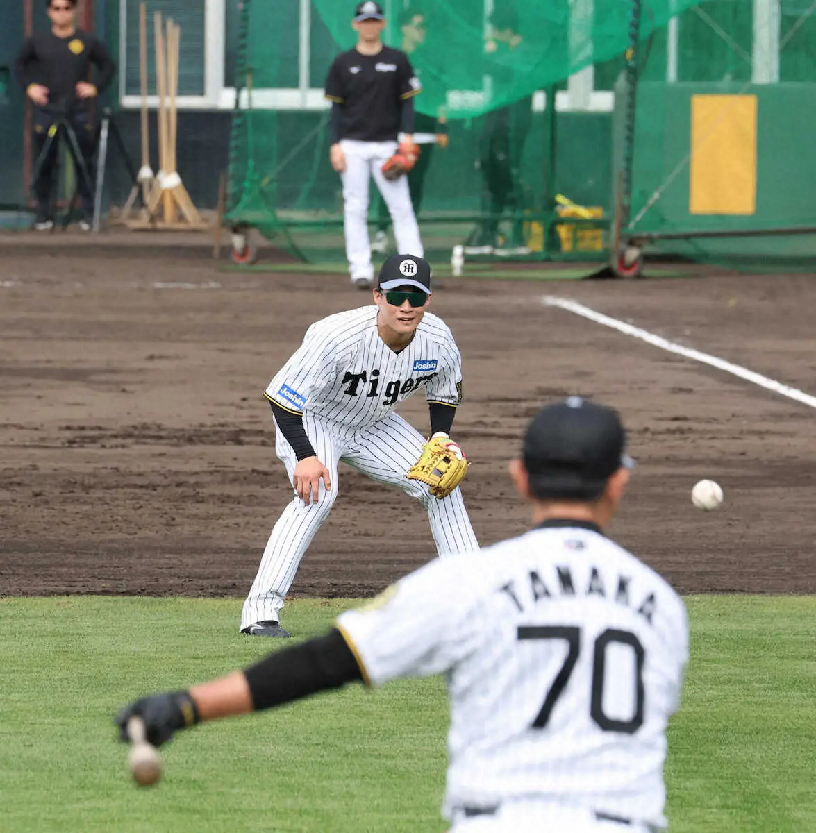 眺めていると、ワンバウンド送球時、秀太は「縦回転、縦回転」と右肘を上げる動作で指導していた。「送球はどうしてもシュート回転してしまいますからね。バウンドしても少しでも真っすぐに、ということで」