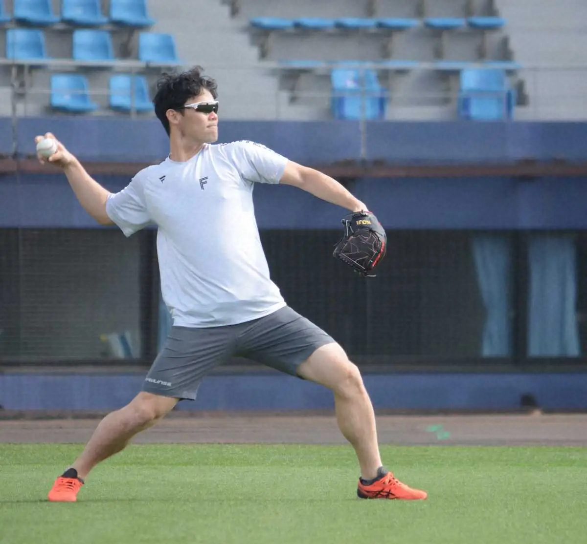ランニング後、杉浦を相手に約60メートルのキャッチボールを実施。「今日は(球場にある洗濯機で)洗濯をしにきました。これはもう趣味の野球なので」と冗談めかしながら汗を拭った。