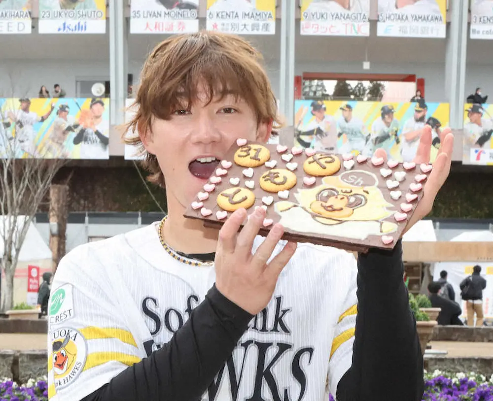 ソフトバンク・正木智也外野手(25)が、特製チョコレートを報道陣からプレゼントされた。特大チョコを手に「こんな凄いのをもらったのは初めてです」と笑みを浮かべた。