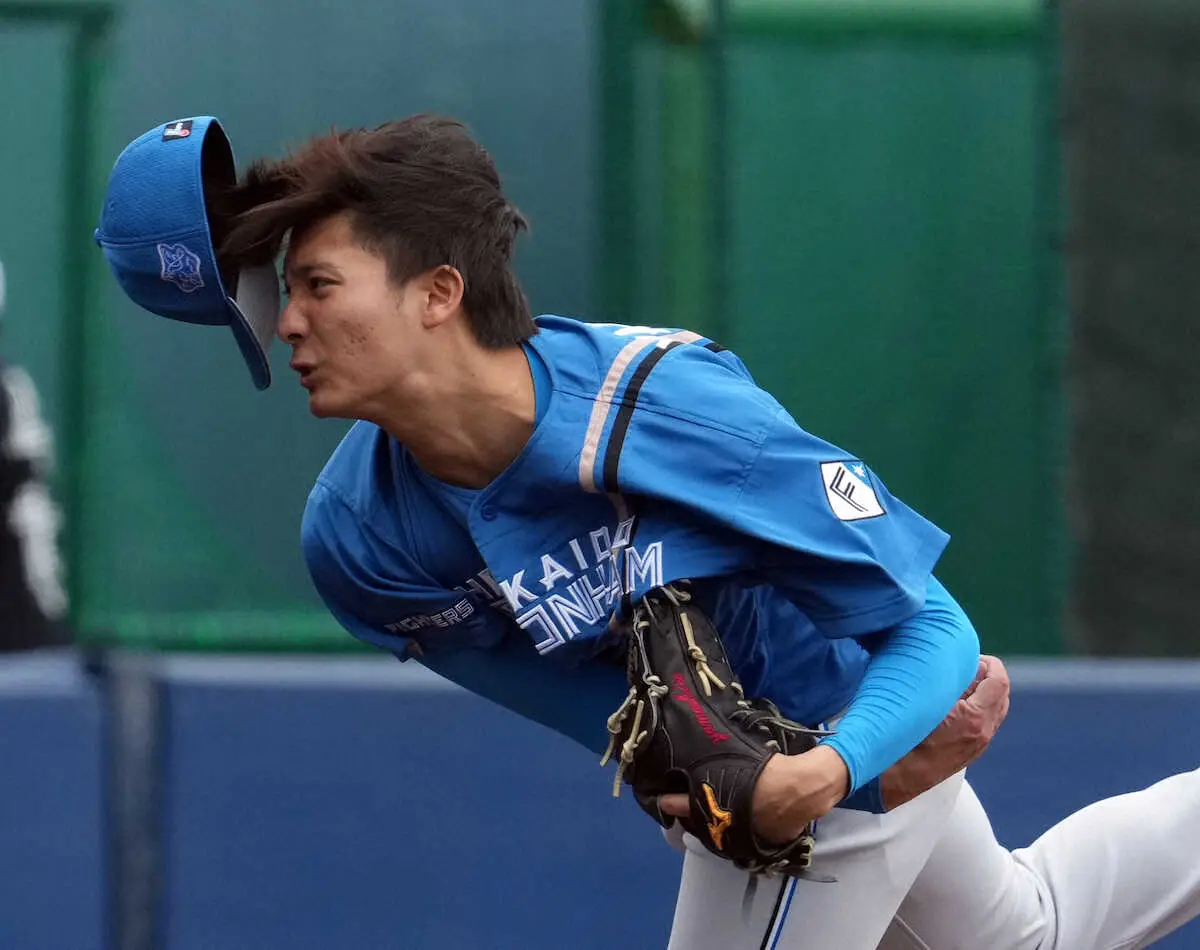 普段は2軍キャンプで汗を流す日本ハムのドラフト6位・山城航太郎(法大)が、何度も帽子を飛ばしながら気迫の投球を見せた。1、2軍合同の紅白戦(名護)で150キロを計測するなど2回の1イニングを打者3人で斬った。開幕4番に決まっている野村をスライダーで空振り三振、万波にフォークを左前打されたが、マルティネスを二ゴロ併殺に斬った。