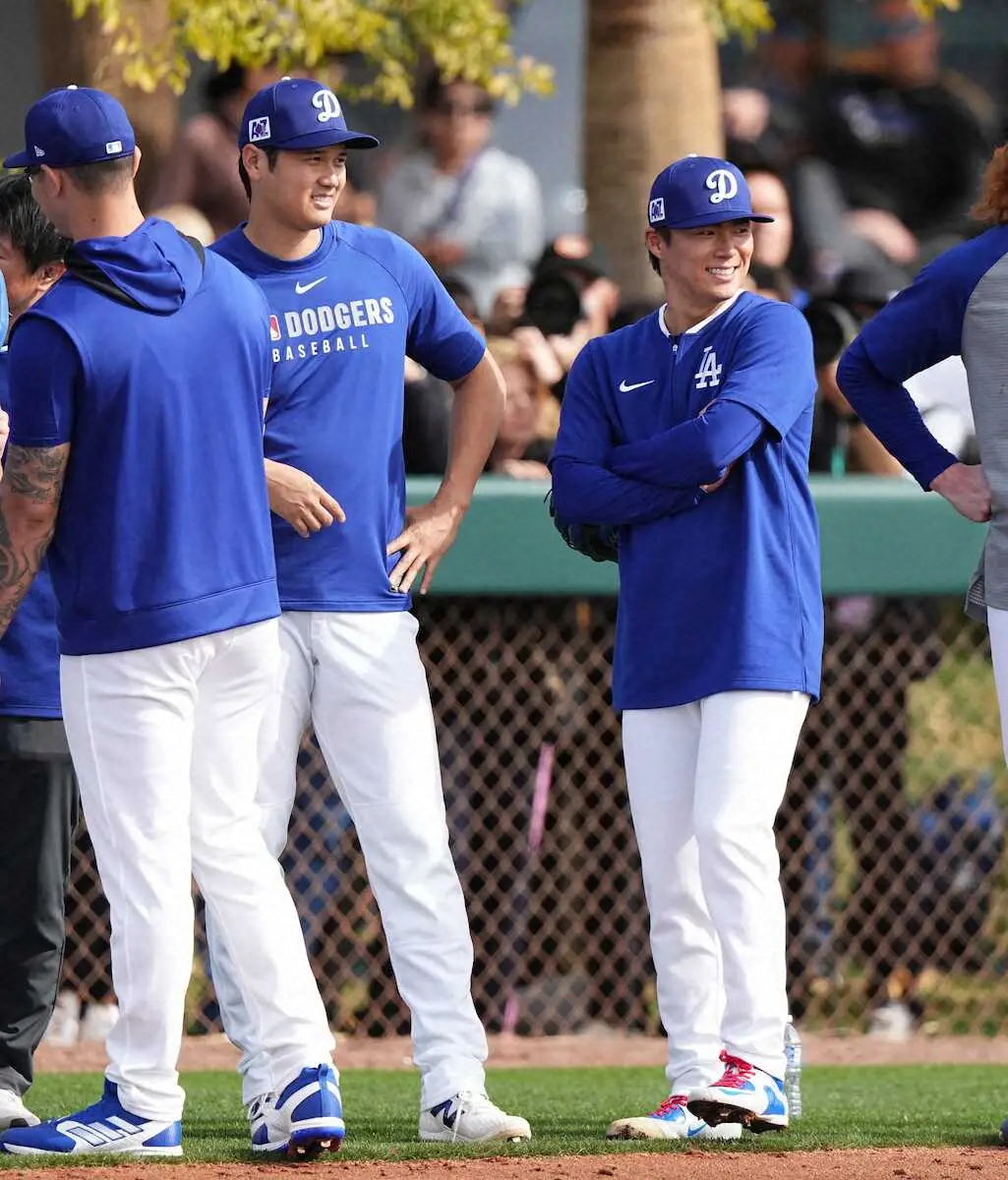 <ドジャースキャンプ>3人で話す(左から)大谷、山本、佐々木大谷(撮影・沢田 明徳) Photo by スポニチ 大谷翔平&山本由伸&佐々木朗希“初3ショット” 大谷がブルペン入り翌日に… ギャラリーで見る この記事のフォト 2025年02月17日の画像一覧 もっと見る 2025年02月17日の画像をもっと見る