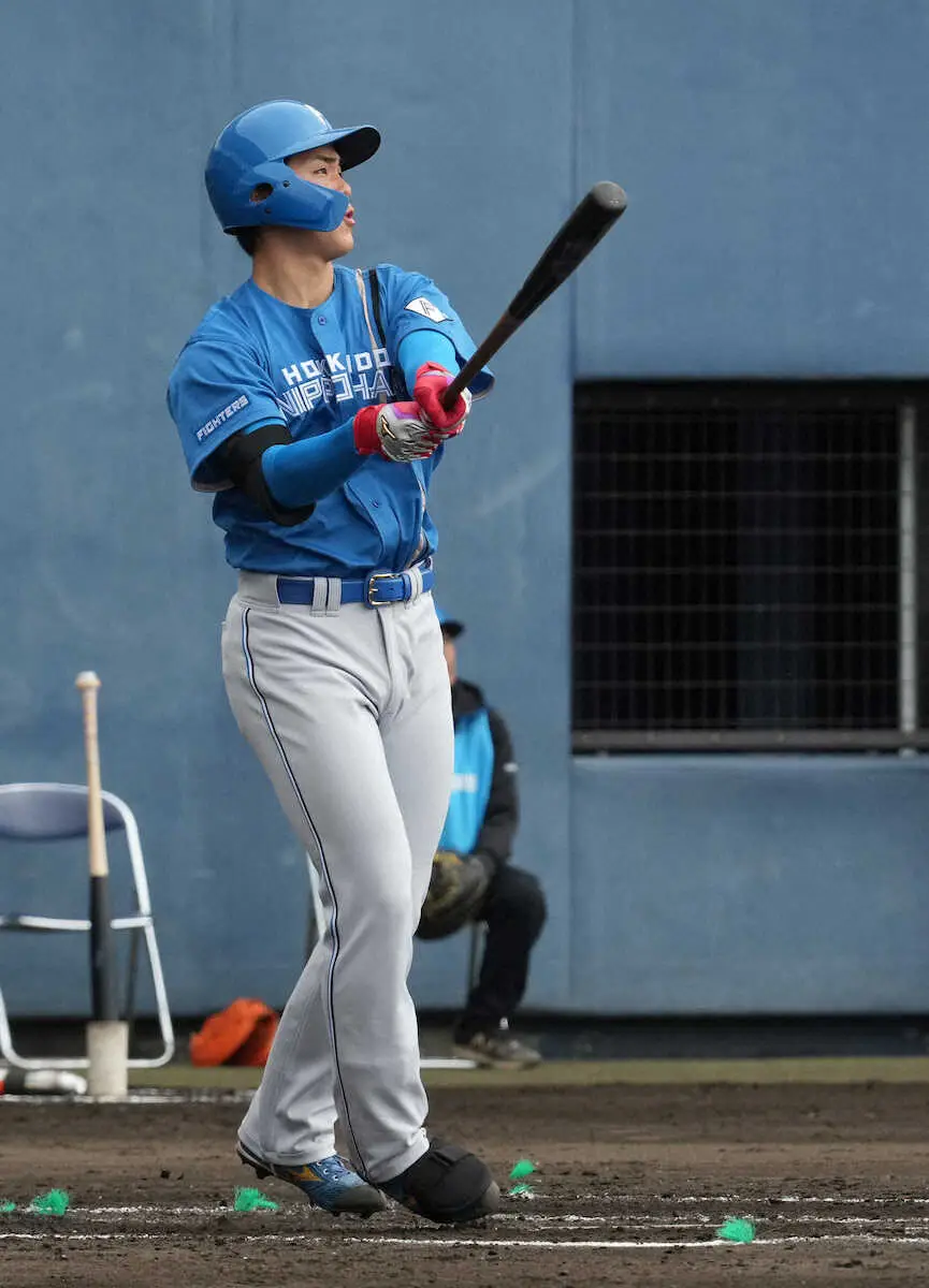 日本ハムのドラ1・柴田が実戦デビュー 中飛もあと一歩で本塁打の大飛球を新庄監督も絶賛
