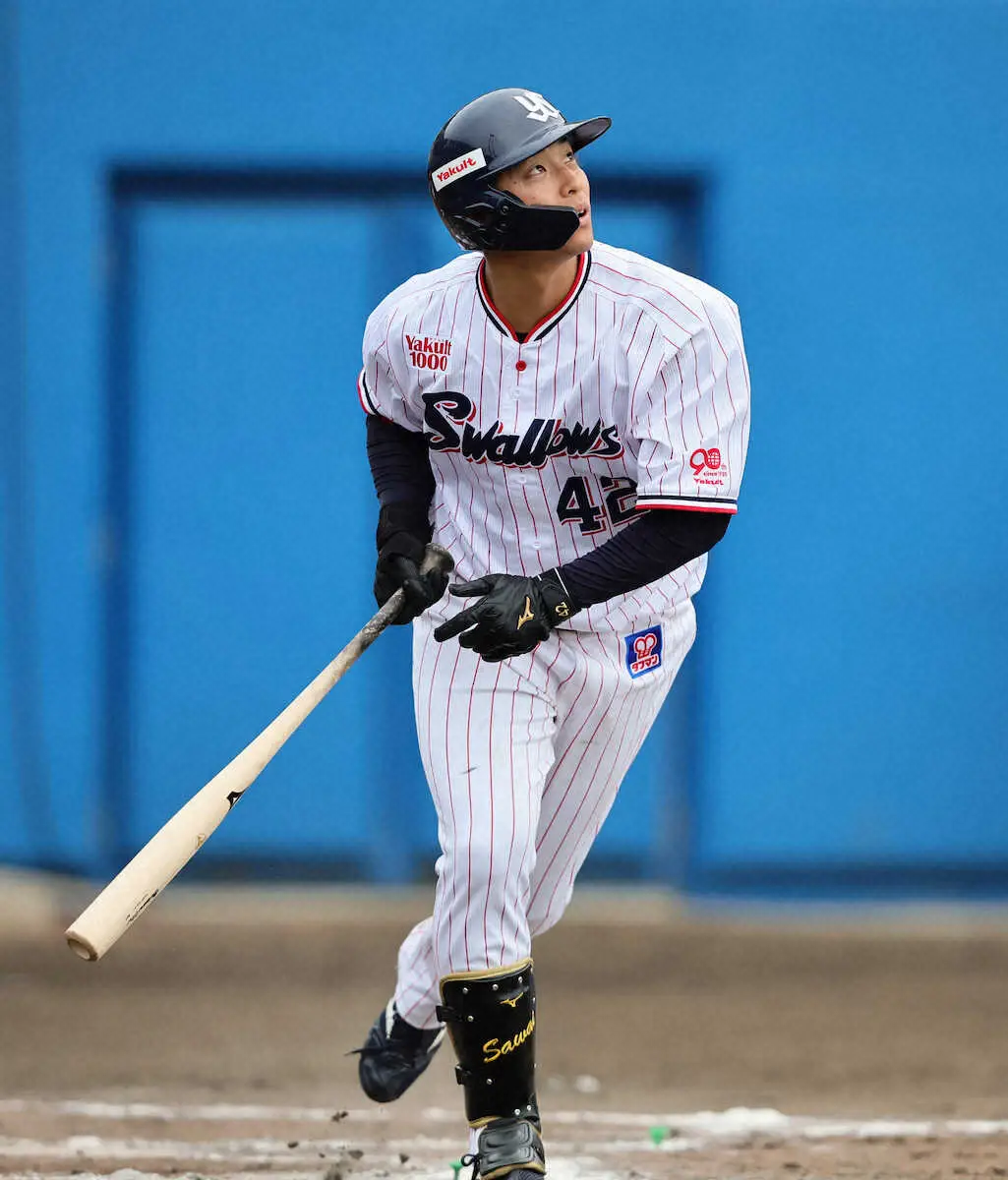 来季メジャー挑戦する主砲・村上の後任候補1番手。高津監督も「彼らしい一発。アピールになったんじゃないか」と評価し「センター、ライトが空いている。大チャンスだと思う」と続けた。今季目標は「(打率)3割20本」と言い切る24歳。浦添キャンプ1号は、その第一歩になる。(秋村 誠人)