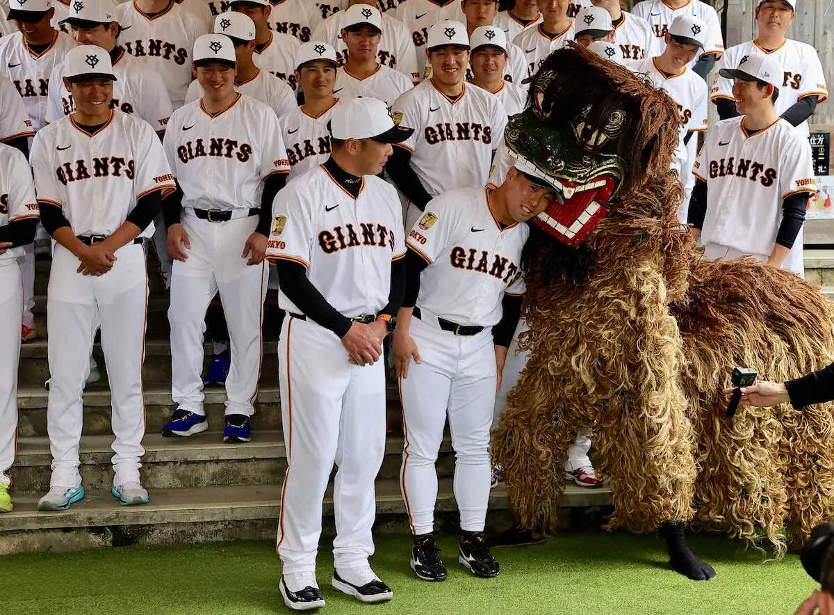 巨人・浅野 坂本の後押しで獅子舞にかまれ「縁起がいいみたいなので今年、頑張りたいなと思います」
