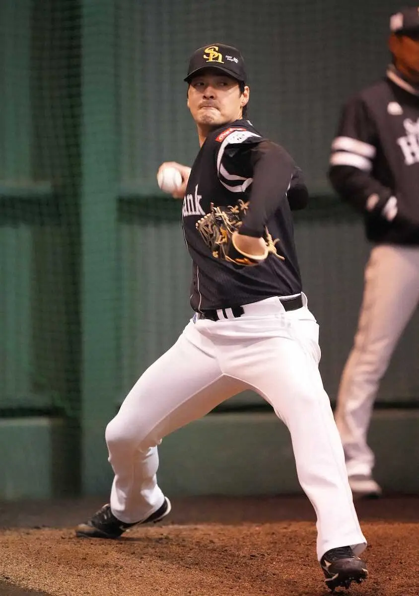 途中には昨年のパ・リーグMVPの近藤と打撃職人の中村晃が打席に立ち、球筋を確認する場面もあった。「本当にいい感じに時間もらって調整できたので。感覚的にもいい感じで投げられている」とうなずいた。
