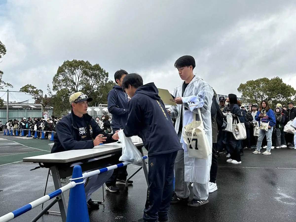 オリックス、練習試合中止で午前中に練習終了 岸田監督が約1時間半のサイン対応でファン歓喜