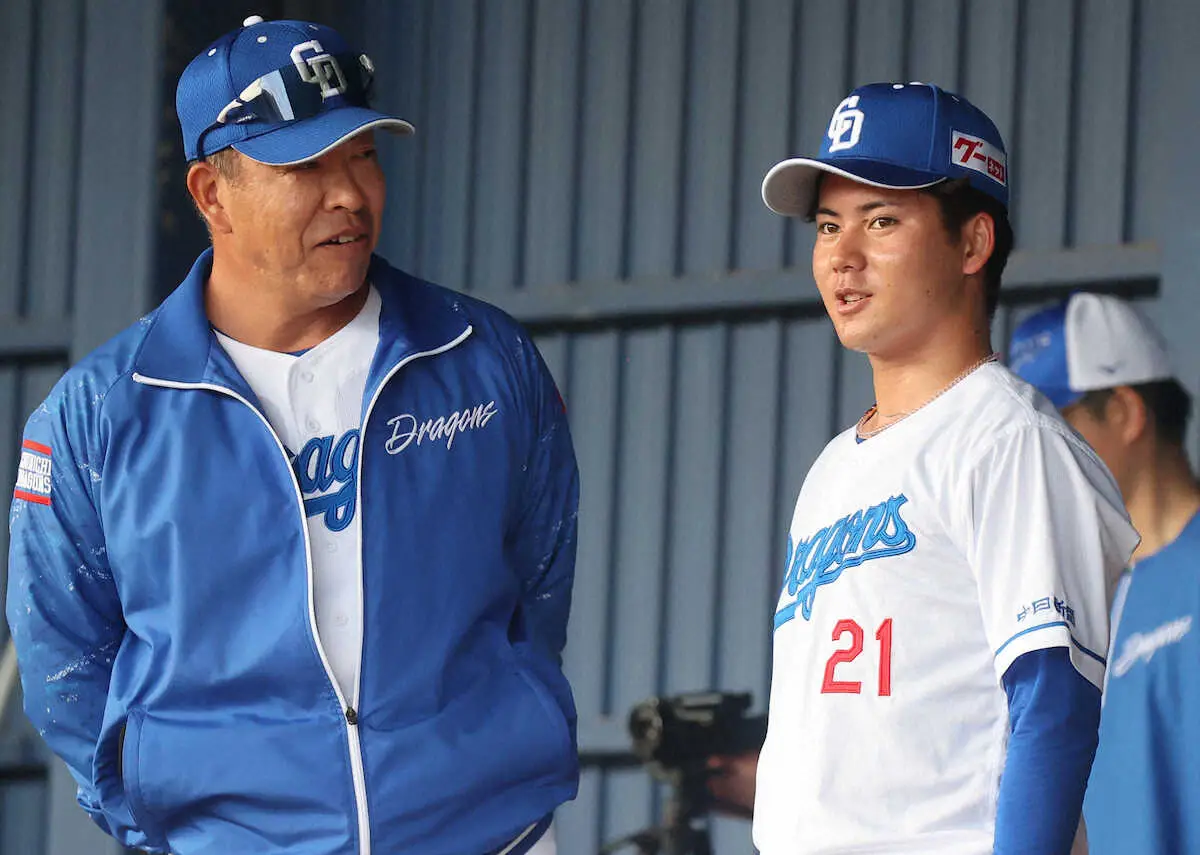 中日のドラフト1位・金丸(関大)が、一日限定で1軍キャンプに体験参加した。シート打撃に初登板した高橋宏を、捕手の真後ろから井上監督と並んで見つめる“英才教育”を受けた。