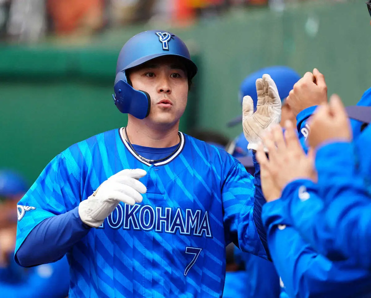 2回に佐野、戸柱の連打で無死一、二塁とし、度会の右前適時打で二塁走者の佐野が激走。一気に本塁に生還した。