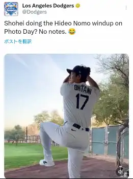 大谷翔平 球団レジェンド野茂英雄氏のトルネード投法披露 野茂氏知るカメラマンも「ビューティフル!」