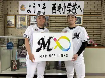ロッテ小島&鈴木が糸満市の西崎小訪問 児童112人と野球体験などで交流