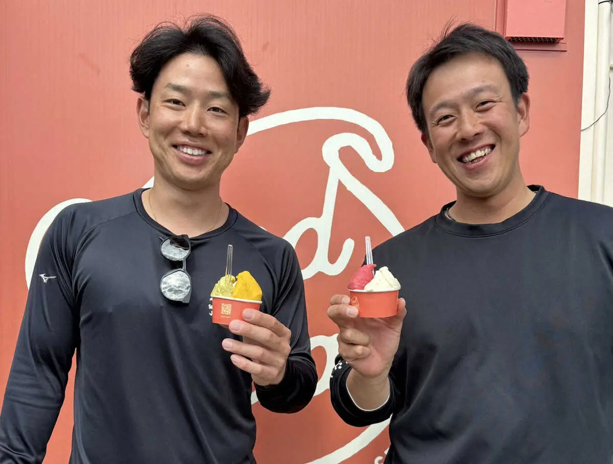 阪神・糸原 休日のひそかな楽しみは「ジェラート」! 谷川打撃投手とスイーツで“充電完了”♪