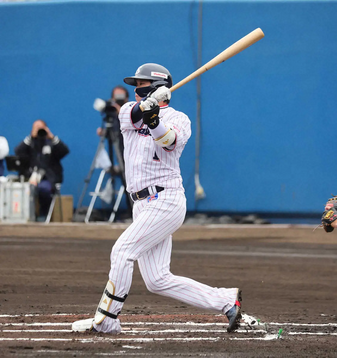 「4番・三塁」の村上は左中間二塁打、良い当たりの中飛で2打数1安打。今年から副キャプテンで左胸には山田と同じ「C」マークを付け、「ヤクルトを支えてくれた人でもあるので、凄く感謝しています」と語った。