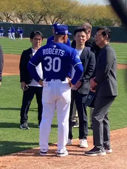 栗山英樹氏 ドジャースキャンプを視察 ロバーツ監督と対面する場面も