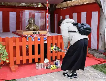担当者訃報から一夜 「つば九郎神社」に好物「るーびー」供えられる 手を合わせ涙するファンも
