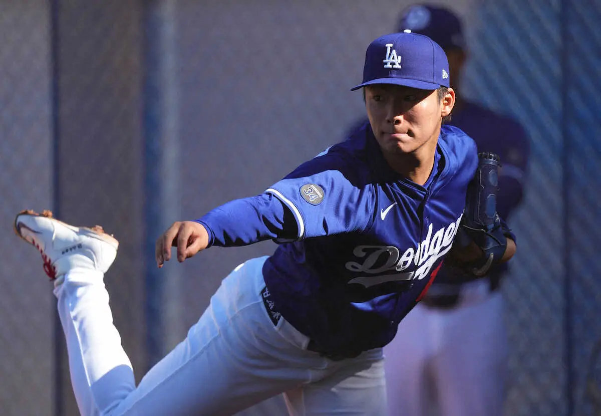 この日はデーブ・ロバーツ監督、ジョエル・ウルフ代理人らが見守る中、12球のブルペン投球。