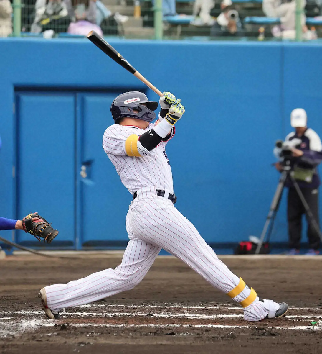 感謝の思いを胸に「燕の主砲」が鋭くバットを振り抜いた。2回先頭で迎えた今年の初実戦初打席。村上はメヒアの高めの直球を捉え、左中間を深々と破った。「やっていた練習がイメージ通り打席で出せた。しっかりはじき返せた」。いきなり飛び出した鮮やかな二塁打は納得の一打だった。