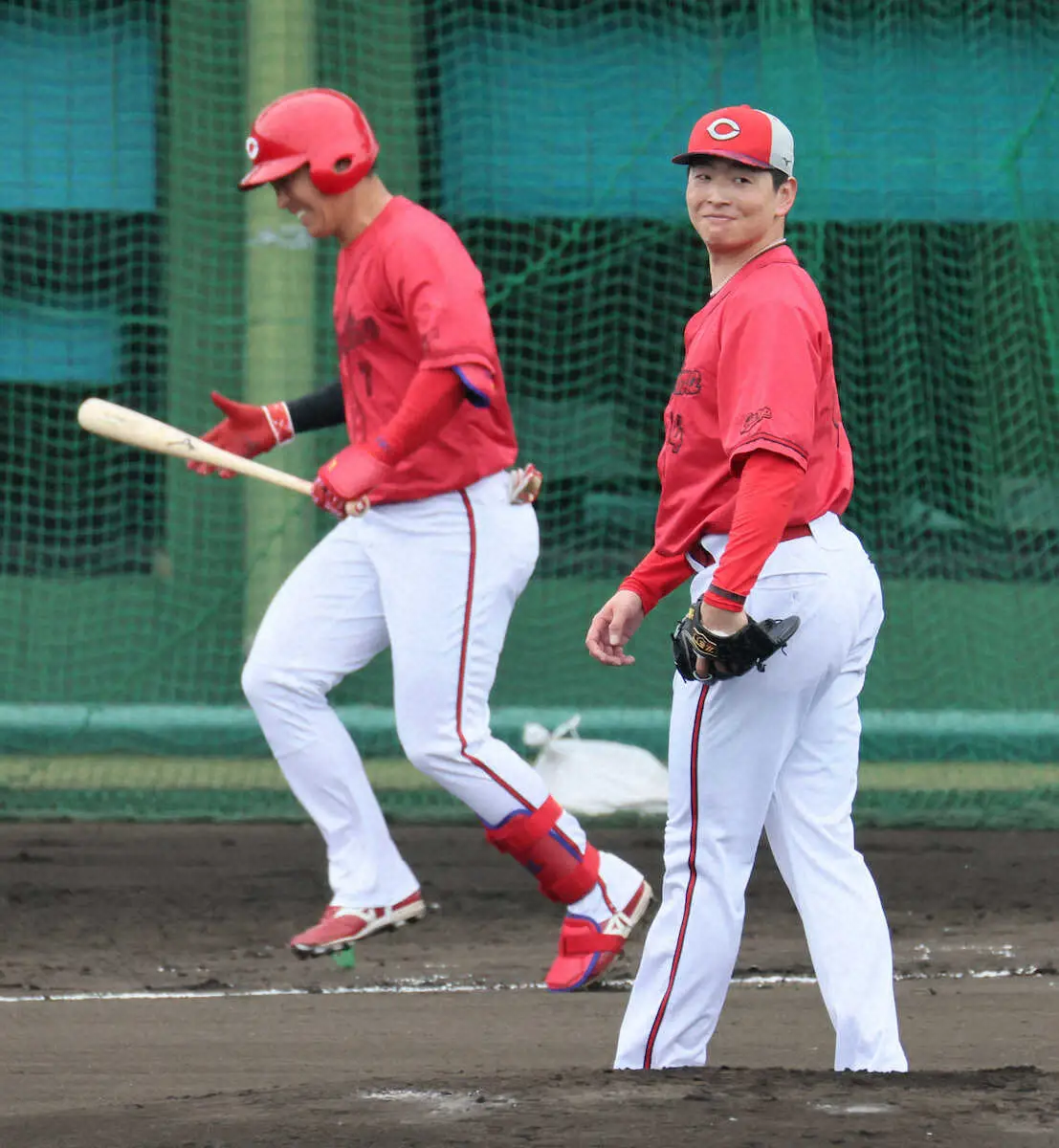 大瀬良は秋山、菊池ら打者5人に20球投げて、被安打1。「変化球はもう少しだけど、真っすぐはある程度コースに投げられたし、出力も出せたので良かった」と汗を拭った。