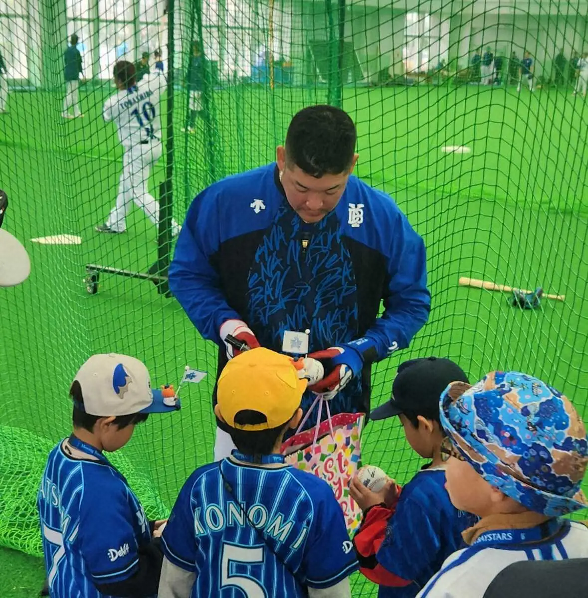 ファンの子供たちにサインをするDeNA・筒香