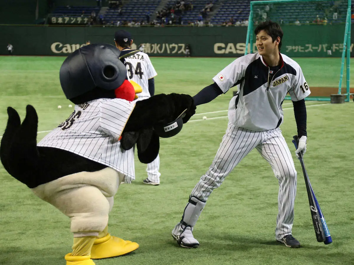 また、囲み取材で大谷はヤクルトの球団マスコットつば九郎の担当者が死去したことに「小さい頃から見ていますし、代表的なマスコットとして人気もあったと思うので。非常に残念ですけど、感謝しています」と話した。日本ハム時代の交流戦や、侍ジャパンの練習中に交流があり「つば九郎はそうですね…」と言いながら回想していた。
