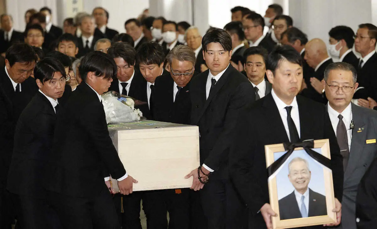 約500人の参列者が集まる中、出棺では棺を持ち、「メジャー挑戦という夢を一番近くで背中を押してくれた」と今季終了後のポスティングシステムでの大リーグ移籍を容認してくれた恩人に改めて感謝した。