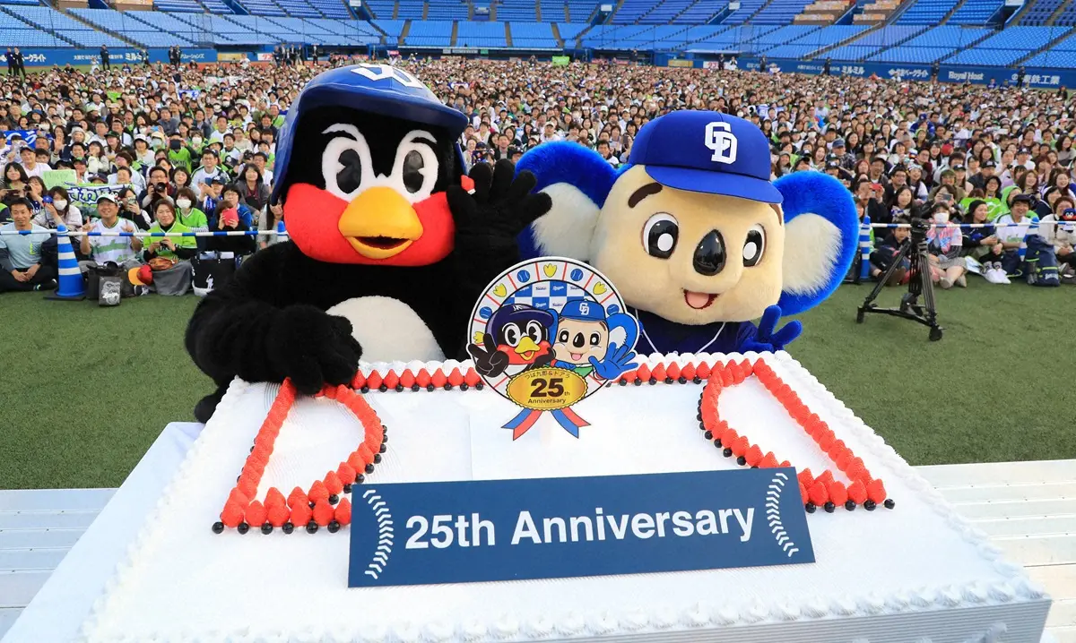 ドアラとつば九郎は盟友であり、マスコット界の2大巨頭。シーズン中の絡みはもちろん、オフには全国で合同のトークショーを開催するなど一緒にプロ野球界を盛り上げる存在だった。