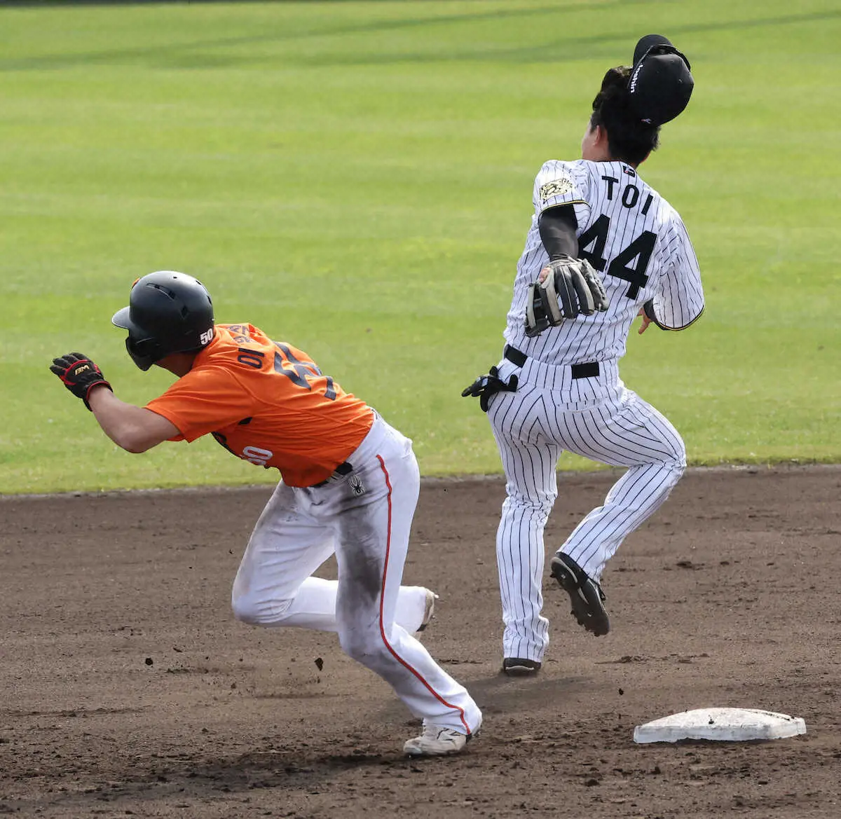 阪神・戸井が練習試合で負傷退場…担架で運ばれる 二塁ベースカバーで