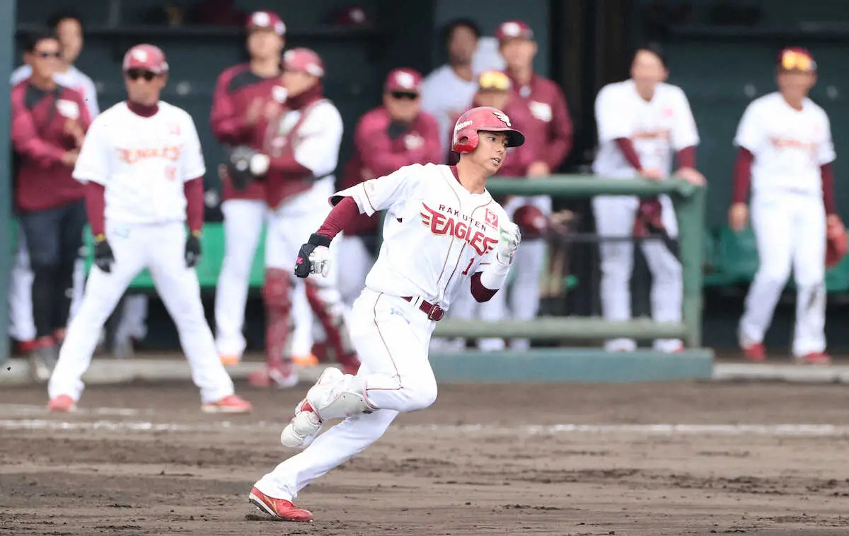 楽天のドラフト1位・宗山塁内野手(21=明大)が22日、阪神とのオープン戦(金武)に2試合連続の「2番・遊撃」でスタメン出場。6回に1点を勝ち越し、なお2死二塁で実戦初長打となる適時三塁打を放った。