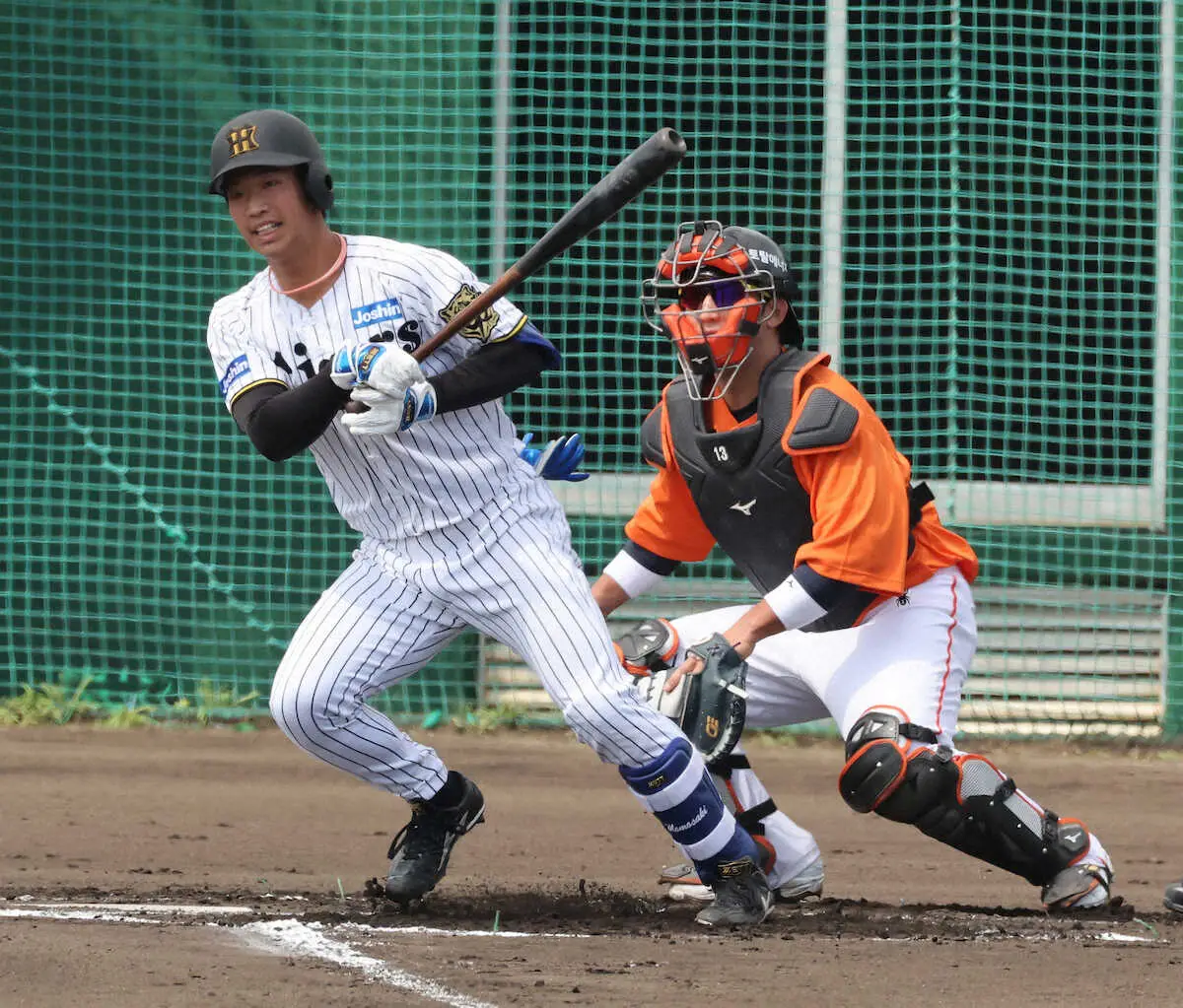 今春は同期入団で同じ高卒2年目の山田が、宜野座組スタート。意識しないはずはなく、反骨心を燃やして具志川で急成長を遂げている。17日の具志川でのシート打撃では視察に訪れた藤川監督の前で湯浅から中越え二塁打を放つなど2安打。指揮官も「1本打った後に“もう1本頑張れよ”と言うともう1本打って。必死にやってるなと目に付きましたね」と評価していた。