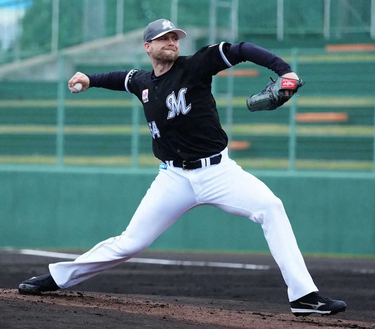 <ロッテ糸満キャンプ>ライブBPに登板したボス(撮影・長久保 豊)