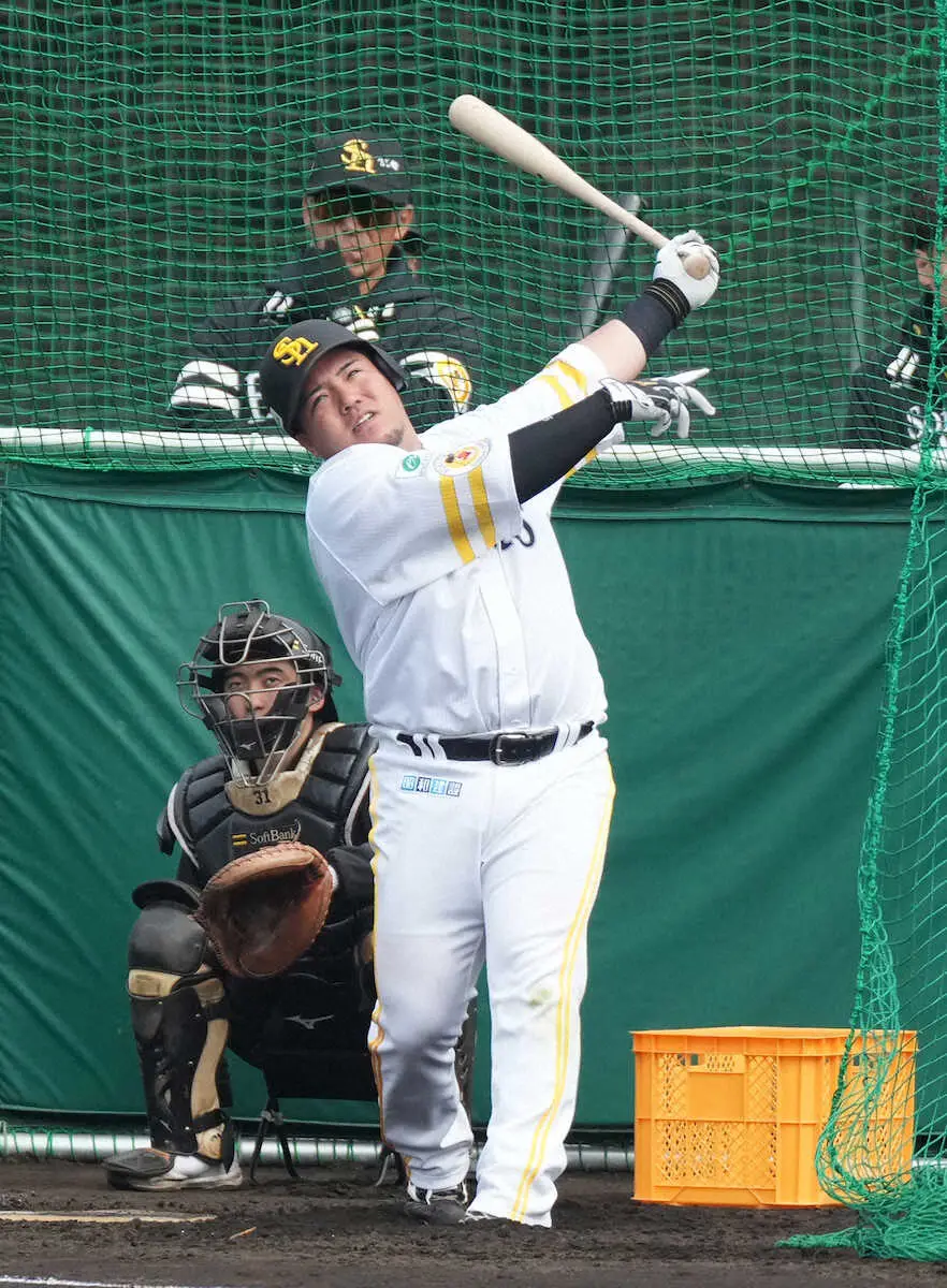 <ソフトバンク春季キャンプ>ランチ特打する山川(撮影・岡田 丈靖)