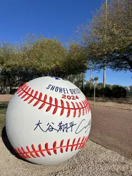 ドジャース・大谷の昨季MVP記念 巨大ボール形オブジェがキャンプ地で公開