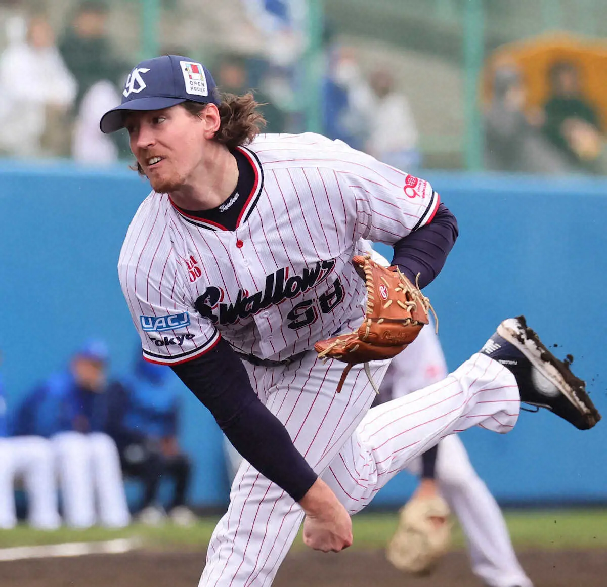 タフな「燕の守護神候補」が衝撃のデビューだ。来日後初の対外試合に臨んだバウマン。5回から3番手でマウンドに上がると、1メートル93、108キロの巨体が躍動した。「投げていて楽しかった」。沖縄とは思えない冷気を気にもとめず、常時150キロ超の直球を軸に打者を圧倒した。