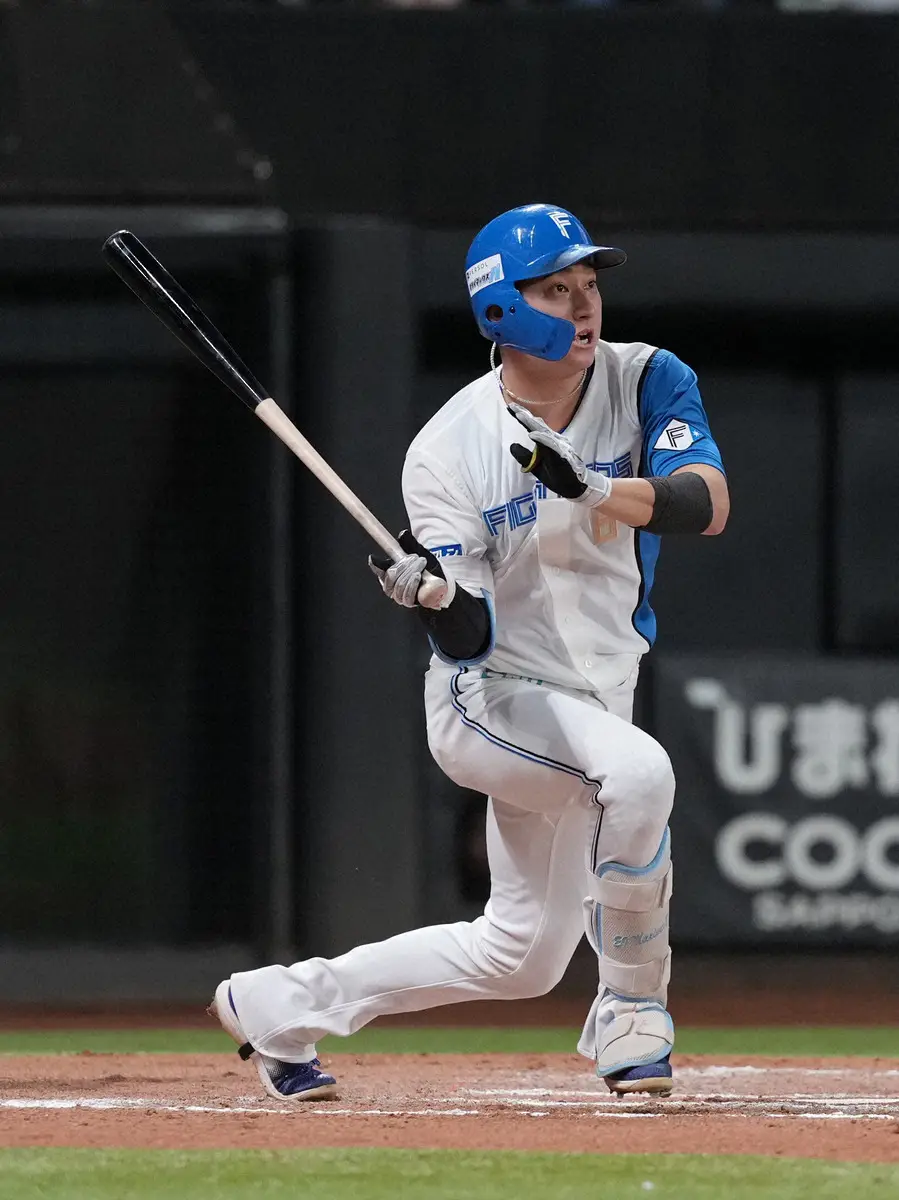 ◎日本ハム・浅間は台湾・味全との練習試合で高く上がった飛球が、強風の影響でポトリと落ちるラッキーな安打を2本放ち「計算通りです。“通天閣打法”です」。人気漫画「ドカベン」に登場する打法です。